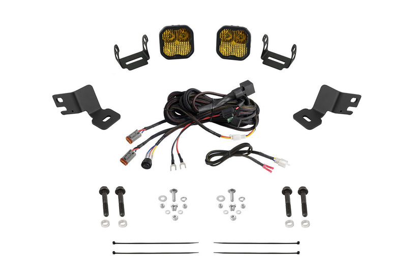 Backlight Functionality. Both the SS3 or SS5 pods included in our Stage Series A-Pillar Light Kits feature a brilliant Amber backlight. This integrated backlight gives you an additional accent light, along with the main beam. The backlight fully illuminates the TIR optic, providing a more unique and modern look than the small indicator LEDs found in other products. To power the backlight, use the included harness to tap your desired vehicle function.