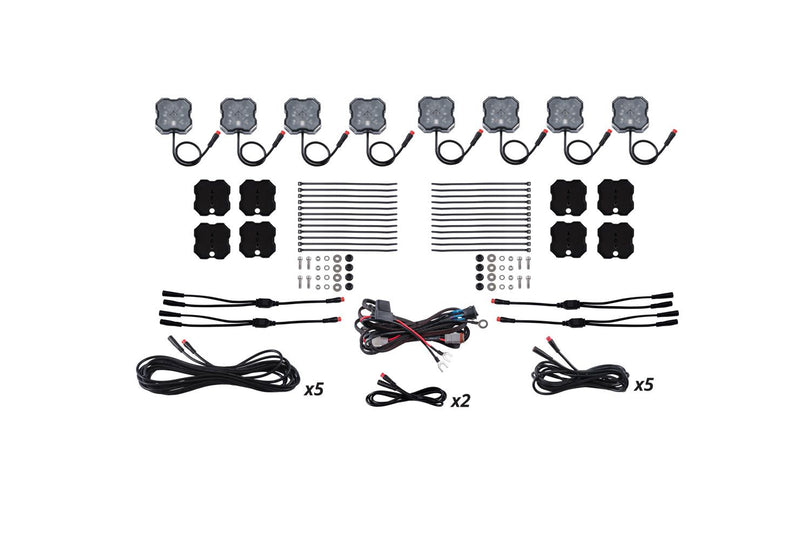 - AS0104 Rock Light M8 RGBW 4-Pack Wiring Kit, AS0106 Rock Light M8 RGBW 2-Pack Wiring Kit, AH0591 Rock Light M8 RGBW (single), DD3066 Bluetooth RGBW M8 Controller 1 ch, DD7465 Rock Light Magnet Mount Adapter Kit
