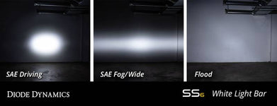 White or Amber. All Stage Series light bars are available in a cool white or amber color. The white is a 6000K color temperature, which is a true white output, without any blue. The amber is a brilliant deep yellow color, perfect for hazards or high contrast in poor weather. The SS6 Stage Series 6 Amber Light Bar can be found here.