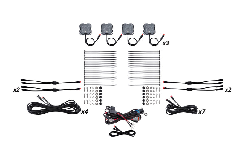 This kit includes all the wiring and hardware necessary to mount eight Stage Series LED rock lights making it easier than ever to add rock lights to your vehicle.