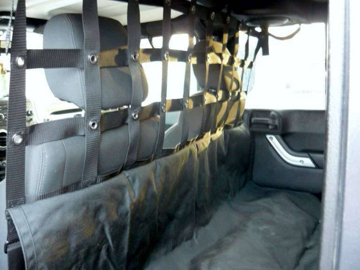 Pet Divider behind front seats and rear Seat saver in one JKU only 2007- up- Black only. Note: Colors may not be exactly as shown due to variations between monitors and devices.