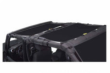 Sun Screen for Jeep Wrangler JK 4 door Unlimited 2 piece covers front and back seats only. Color: Black Note: Colors may not be exactly as shown due to variations between monitors and devices. The sample sunscreen images look like a solid Color, but sunscreens are similar to a screen door, allowing you to see through them.