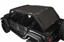 Sun Screen for Jeep Wrangler JK 4 Unlimited door 2 piece front safari length covers front, back seats and cargo area. Color: Black Note: Colors may not be exactly as shown due to variations between monitors and devices. The sample sunscreen images look like a solid Color, but sunscreens are similar to a screen door, allowing you to see through them.