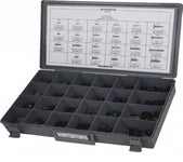 Shipped in a 24 Hole Large Gray Plastic Tray. This is a very popular selling Shield Retainer Assortment. It covers 5/32" 3/16" 13/64" 7/32" 1/4" 9/32" 5/16" 23/64" 3/8" and 25/64" hole sizes. It contains 23 different sizes and has 311 total pieces. Reorder is easy with the #8508 refill kit.