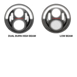 A high performance 7” round Jeep LED headlight, offering Dual-Burn high & low beam optics. This technology combines your high and low beam when turning on your high beam, designed as an aftermarket headlight, providing the driver with both widespread visibility along with a powerful punch of light down the road.