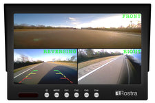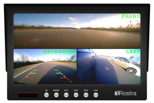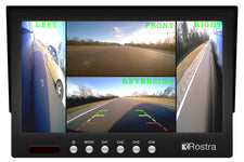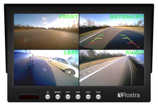 Rostrain™s 250-8222 and 250-8223 multi-camera monitors provide drivers with a variety of ways to display the video from their cameras on-screen including one at a time or with multiple cameras in a split view. Below are the twelve different options which can be chosen on-the-go using the MODE button on the monitor or its remote control.