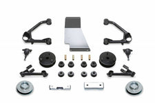 The 3 Budget System for 2015-18 GM 1500 SUVs provides a mild lift height, supple ride and clearance for 33" tall tires satisfying the value minded enthusiast. Fabtechs replacement DOM upper tubular control arms feature heavy duty extended range ball joints that provide additional strength to the front suspension. The new ball joints provide unrestricted movement throughout the suspension travel range for smooth operation. On 4WD models the front differential housing is relocated to retain proper CV angles at the new ride height, while a 1/4" thick steel skid plate protects the front diff. This system works with MagneRide and Non MagneRide equipped vehicles.