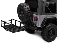 Here’s a hitch receiver cargo carrier with the frame and capacity to do some major hauling! The Magnum Hitch-N-Ride is a whopping 50” wide, 22” front-to-back and has 12” sides. It has a weight capacity of 500 lbs and has a super-strong aircraft aluminum frame for handling “rough n’ tough” loads.