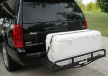 The Hitch-N-Ride easily handles all kinds of cargo – luggage, ice chests, firewood, cartons, sports equipment, hunting equipment, etc. – most things that normally require trucking. With 7 inch side-rails and handy tie-down points, the Hitch-N-Ride secures and delivers your “precious cargo” on-time, every-time.
