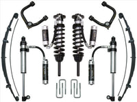 ICON Vehicle Dynamics 2005-UP Toyota Tacoma suspension systems are designed with maximum performance and the serious driver in mind. Throughout the development of these systems ICON engineers’ primary focus is to increase wheel travel and damping ability, which translates into outstanding vehicle control and ride quality both on and off-road. This Stage 9 system goes a step further in delivering ICON performance to the Tacoma with the addition of rear suspension components that include an ICON RXT multi-rate leaf spring and a unique RXT-specific 2.5 Series shock.