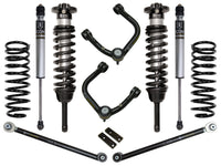 The Stage 3 suspension system for the 2010-UP Toyota 4Runner/2010-2014 FJ Cruiser includes the components found in the Stage 2 system along with an ICON Tubular Steel Rear Lower Link kit. Extended travel ICON 2.5 Series coilover shocks and a tubular steel Delta Joint upper control arm kit provide a significant upgrade to the 4Runner’s front suspension. The rear of the vehicle is improved with our 2" lift coil springs, ICON 2.0 Aluminum Series shocks, and the additional rear lower links. ICON's tubular steel lower links are much stronger than the OE units, feature a low maintenance multi-durometer bushing, and can be adjusted for optimum pinion angle.