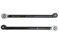 This rear lower link arm kit features PTFE-lined FK rod ends for increased suspension articulation, reduced deflection, and link arm length adjustability and also utilize a multi durometer bushing that allows for noise free operation and maximum angularity without the need for periodic greasing and/or other maintenance.; The quality rod ends and bushings featured in these link arms allow the vehicle’s suspension to function as intended, without the bushing bind that limits the vehicle in stock form.
