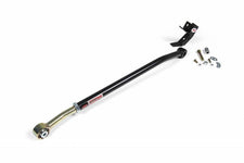 The trackbar controls lateral movement of the axle housing. It is attached to the chassis and axle on opposite sides of the vehicle with flexible mounting points to accommodate suspension travel. Unfortunately, the fixed length of the OE trackbar won't accommodate ride height adjustments. Changing the distance between mounting points forces the axle housing out of alignment with the rest of the vehicle. Unless corrected, this condition will place unnecessary stress on related suspension and steering components, create alignment problems, and prevent proper suspension & swaybar disconnect operation. Adjustable Trackbar; Rear; Heavy duty replacement for OE panhard rod; Variable length; Attaches axle housing to chassis rail; DOM Steel tube construction; 1.25 in. Diameter; 0.25 in. Thick; Includes axle bracket for CV driveshaft; Powdercoated; Zinc plated; Bolt-on; Each
