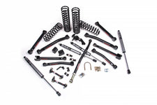 Build the ultimate adventure rig with a 3.5" lift kit J-Krawl suspension system. Fits 4-Door Jeep Wrangler JK. Designed for maximum articulation and adjustability, the complete suspension system includes dual rate coil springs, adjustable front track bar, rear track bar bracket and tuned FOX shocks. The heart of the J-Krawl design is a set of J-Flex upper and lower control arms and sway bar Quicker disconnects. These systems build off Jeep’s factory suspension mounting points and upgrades to front and rear, upper and lower J-Flex adjustable control arms for maximum articulation along with more strength for trails and rock crawling brawn along with adjustability to dial in front caster, rear pinion and overall vehicle wheelbase. In addition to eight high strength adjustable control arms, the J-Krawl system features specially designed FOX 2.0 IFP shocks to maximize travel and performance. An aftermarket front driveshaft is strongly recommended due to additional travel capable. Routine maintenance is required.
