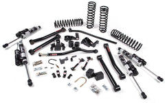 The JSPEC J Konnect 3.5 suspension system is for the JK Wrangler owner who wants it all; the culmination of our expertise in creating suspensions for the JK that accentuate the JK Wranglers strengths while addressing its weaknesses. By combining some of our best known off road ready upgrades with our popular daily driver friendly modifications, the J Konnect will transform your JK into the commuter that you arent afraid to wheel! This system includes our simple and nearly indestructible J Link control arms and our JSPEC specific front and rear track bar brace combination that assures your Jeep drives out of whatever it gets in to. Our draglink flip flattens the steering linkage and track bar, relieving pressure on the steering box associated with lifting a Jeep and eliminating bump steer. The J Konnect system is still the quickest, easiest installation of its kind, but does feature a couple of key components that require welding. Upgrades for the J Konnect include some of JKSs well known, hardcore off road upgrades that require the expertise of an experienced installer.