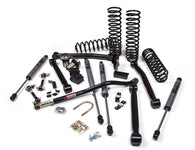 Create the ultimate "go-anywhere" overland Jeep Wrangler JK 4-Door with a JKS 3.5" J-Lander suspension system. The JKS J-Lander kit includes dual rate coil springs, rear ACOS adjustable coil spacers, FOX 2.0 Adventure Series IFP shocks, front adjustable track bar, rear track bar bracket, front sway bar Quicker Disconnects, front and rear lower J-Link control arms and bump stop extensions. Whether you call it Overlanding or Camping, adding weight to a Jeep can cause unforeseen handling and setup issues. With thousands of backcountry miles, the JKS R&D team has developed the J-Lander system for added strength and reliability along with low maintenance and adjustability. Built for on-road comfort along with off-road capability. HD dual rate coil springs are used 3.5€� up front with the rear receiving 2.5€� springs in addition to ACOS spacers to dial in ride height based load. Specially designed FOX 2.0 IFP shocks are added for improved performance. Get off the grid with J-Lander.