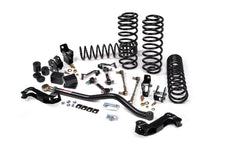 Increase the clearance and performance of your 4-Door Jeep Wrangler JL with a 2.5" lift J-Kontrol™ suspension system. It delivers exceptional stability on and off road. A step up from JKS J-Venture™ systems, J-Kontrol™ is a true bolt-on system that adds in front control arm correction brackets to the J-Venture Kit's long list of upgrade components including JSPEC dual-rate heavy duty coil springs designed for bumpers, winches, or tire carriers, a front adjustable Track Bar and rear Track Bar Bracket (to correct axle positioning under vehicle), Quicker-Disconnect sway bar end links, front/rear Bump Stop Extensions and front Control Arm Correction Brackets to flatten upper/lower control arm angles. The supplied control arm brackets work with your Jeep's stock control arms to correct caster and improve handling. J-Kontrol offers enhanced performance for daily driving, beach cruising, or regular trail use.