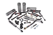 The hardcore rock crawling suspension choice for your 4-Door Diesel Jeep Wrangler JL is a J-Krawl 3.5" lift kit. The complete system is designed for maximum articulation, strength and adjustability. Components include J-Flex Upper and Lower Control Arms, JSPEC dual rate coil springs, custom-valved FOX 2.0 IFP Performance Series IFP shocks, an adjustable front track bar, a rear track bar bracket, Quicker Disconnect front sway bar end links, and bump stop extensions. J-Krawl builds off Jeep’s factory suspension mounting points and upgrades everything front to rear. Adjustability is important for fine tuning suspension geometry. J-Krawl delivers. Dial in front caster, rear pinion and overall vehicle wheelbase. The JKS Engineering team spent a lot of time dialing in the FOX shock valving and spring rates to suit J-Krawl's combination of parts as well as oversized wheels and tires. You'll be impressed with the stability and compression/rebound response. Take your Jeep's off-road performance and strength to the next level. It should be noted that an aftermarket front driveshaft is strongly recommended due to potential additional travel.