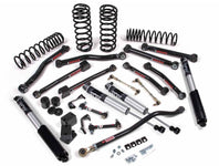 To properly limit suspension up-travel, this lift kit also includes front/rear bump stop extensions. The front/rear J-Flex upper control arms add strength and adjustability, while the front/rear J-Flex lower control arms enhance stability and control on rough terrain.