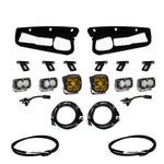 This kit specifically utilizes a set of S2 Sports in Driving/Combo, a set of S2 Sports in Wide Cornering, and a set of Squadron SAE in wide cornering. The brackets used to mount this performance oriented light setup ensure no cutting or drilling, and the wiring that is included will allow for the lights to be operated from toggle switches in the cab.