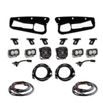 This kit specifically utilizes a set of S2 Sports in Driving/Combo, a set of S2 Sports in Wide Cornering, and a set of Squadron SAE in wide cornering. The brackets used to mount this performance oriented light setup ensure no cutting or drilling, and the wiring that is included will allow for the lights to be operated from toggle switches in the cab.