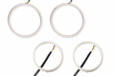Sizing: All sizes are listed by outside diameter, in millimeters. Width is 8mm, so inside diameter is 16mm less than outside diameter. Total height is 4.5mm. Mounting: The halos must be custom-mounted in position using adhesive or beading wire using the integrated mounting tabs. If you wish, mounting tabs may be removed with a pair of clippers or basic sanding. The halos can be modified if needed to fit certain applications. Up to 20 percent of the halo can be removed using side-cutting snips and still remain fully functional.