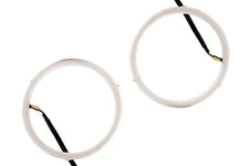 All input wires activate the halos, at different brightness levels. All amber-colored halos ship with low priority drivers. This means that if both low and high power inputs are powered, the LED will light up with low power level. This is convenient for connecting the red wire to a parking light or DRL signal, for use during the day as a high-power DRL. Then, if the white wire is connected to the headlamp power, they will dim down at night. If the yellow wire is powered at any time, the halo will light up at 200 percent brightness momentarily, intended for signalling (dims automatically if powered for more than two seconds).
