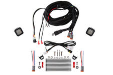 - Plug-and-play wiring harness with OEM connectors and toggle switch override.