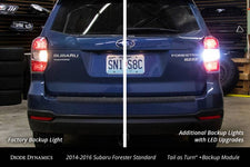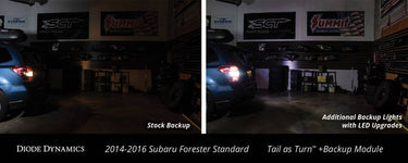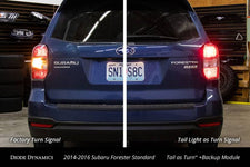 Custom Appearance. This kit will convert the incandescent tail light on your 2014-2016 Subaru Forester to also function as the turn signal. This kit will also upgrade your tail light to LED for a much more modern appearance! Additional Backup Lights. Also available with the kit, you can convert the old turn signal socket to an extra backup light. With double the number of backup lights, you will add much more visibility when reversing at night. Each kit is already configured to accomplish this; however, you will need to purchase new white LED bulbs. LEDs must be used, instead of standard bulbs, since you will be drawing power from the backup light circuit. Easy Installation. Using OEM tail light connectors, the kit is 100 percent plug-and-play and installs in minutes, with no wiring required. While the tail lights still have to be removed from the car, the actual installation time is less than 5 minutes per side.