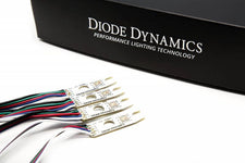 Optically correct. Unlike strips or halos, replacement boards work in conjunction with factory optics in your headlight. Since the factory setup uses only one amber chip, it can be difficult to align the light properly from all four replacement emitters (Red, Green, Blue, and White). To save cost, other brands often use low-cost generic chips, which cannot focus light properly. This creates odd appearances, as some sections are brighter than others, and mixed colors like yellow and purple don't match. Diode Dynamics uses high-intensity automotive emitters to direct light properly to the factory optic, and all designs are tested a number of times with small adjustments to make sure the setup is optimized. Even a 0.1mm change can make a big difference, and Diode Dynamics products are carefully tuned for maximum performance.