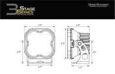 Functional output. The Stage SeriesCombo pattern combines both the Driving and Flood optics. It shines light downrange in a focused rectangular 65x25 degree pattern. The combo lens features a flood optic on one side and a driving optic on the other. For states that require them we also offer snap-on covers for your SS3 Pod. These covers are available in a variety of colors and keep your SS3 Pod clean and protected from dirt dust or whatever else the road throws your way!