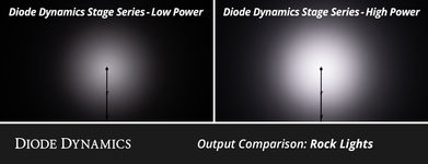 Single-Color or RGBW. The Stage Series Rock Lights in this kit are available in a single-color or multicolor output. Our single-color Stage Series Rock Lights provide a peak output of 800 lumens with a true power draw of over 10 watts illuminating in a 5700K color temperature.