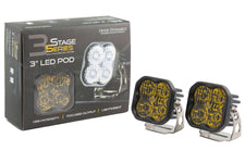 White or Yellow. All Stage Series LED pods are available in a cool white or selective yellow color. The white is a 6000K color temperature which is a true white output without any blue and matches most factory LED lighting. The selective yellow is a 3000K color temperature great for high contrast in poor weather or a distinctive look on the road.