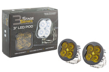 White or Yellow. All Stage Series LED pods are available in a cool white or selective yellow color. The white is a 6000K color temperature which is a true white output without any blue and matches most factory LED lighting. The selective yellow is a 3000K color temperature great for high contrast in poor weather or a distinctive look on the road.