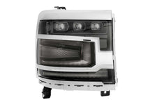 No Substitutes: If you're still running oldschool halogen headlights on your Silverado, then you're just behind the times! Thankfully the new Morimoto XB LED headlights: Look great. Are well-built. Have a virtually infinite life span. An unbeatable warranty, and out-perform the alternatives. Easily making them the best LED headlights on the market today for the Silverado aftermarket OEM Plus: At TRS we live, eat, and sleep headlights. While the Silverado LEDs from Morimoto cost a bit more relative to other options in the aftermarket; as the saying goes "you pay for what you get". We've seen it all, and their fit and finish is far superior to everything else out there. Guaranteed. Performance: We've always been blown away by the fact that the other brands don't even consider how well their headlights perform on the road at night. Most often, they're a downgrade compared to even the standard halogen setup, and that's a shame. The good news is that Morimoto's XB LED headlights produce a well defined beam pattern with a great amount of width, intensity, and a proper distribution of light. DOT Approved: Make no mistake, these will produce a much different [better] result than slapping some LED replacement bulbs into your stock housings. Their triple-projector optics meet & exceed all SAE, DOT, and FMVSS108 regulations when aimed properly...and that's easy to do with their integrated vertical/lateral adjusters. Plug-n-Play: Wiring is easy too! The LED headlights are designed to work on your Chevy Silverado without any modifications. They will plug into the factory connectors for the stock headlights and each assembly includes all necessary connectors, rubber seals, and pigtails for a plug n play install. No error codes, no flickering, hyper-flashing, or radio interference. They can easily be removed, and will not void your factory warranty. Sequential LED DRL: Game Changer! Their LED daytime running light is powered by Osram 5000K LEDs and is insanely bright, easily visible during the day. A separate optic that's dedicated to the turn signal function uses amber LED's to produce a full sequential turn signal. While that feature will cause others to mistake your truck for an Audi; for those who are a bit more traditional they can also be setup to run as solid on/off style signals too. Well-Built: Their UV-coated polycarbonate lens will resist the test of time, ensuring your truck's new headlights will look good as new for many years to come. The PPS plastic housing is light-weight and much stronger than comparable alternatives. The die-cast aluminum heat-sinks inside the housings provide more than an adequate amount of cooling for the OEM grade Osram LED chips that produce the light. These complete headlights may be new to the market, but Morimoto's XB LED fog lights have proven themselves perfect after 5+ years out now, which is confidence inspiring. They Look: Amazing. At least in our opinion! The subtle elements incorporated in their design are more than enough to make them stand out, but they're clean enough to be considered top of the line original equipment to those who don't know any better. The piano black trim and smoked gray reflectors keep the color scheme neutral, and the Bi-LED kuria-optic projectors are as modern as it gets.