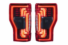 STYLE: Inspired by the design of modern OEM LED tail lights from Ford, these look at-home in the rear end of the Super Duty. Three rows of 3D light blades are illuminated from the rear with integrated TIR optics, and serve as the brake light and turn signal. The parking light optic around the outer edge of the lights mirrors the OEM LED setup, and is equally impressive in the intensity department day or night. Pair that with the surrounding muscular trim, optional smoked or red outer lens, and we've easily got what is the best-looking set of Super Duty Tail Lights on the road.