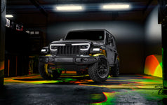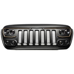 The Oracle Lighting Vector Series Grill for the Jeep Wrangler JL and Gladiator JT is the first full-featured replacement grill with integrated LED light emitters for Low Beam, High Beam, as well as a Dynamic LED DRL. This unique design is equipped with an array of application-specific LED lighting features and has the aggressive styling and rugged durability that Jeep owners demand. The new PRO-SERIES revision of the Vector Grill includes major improvements to the quality and durability of the LED DRL Modules. These modules are now robotically sealed to create an Ingress Protection Rating of IP68 which will keep moisture out of your fixtures even from exposure to pressurized water spray and brief underwater submersions. The DRL modules are now mounted with hardware rather than adhesive to make these parts easier to remove for grill painting and maintenance.   Each LED emitter can independently adjusted in order to put a focused beam of light on the road without blinding oncoming traffic, this is especially important for lifted Wranglers. The separate driving and Low Beam lights allow for proper light distribution for optimal road legal light coverage. The Vector Series Grill features an impressive 5,600 Combined Lumen (Raw Lumens) Low Beam with advanced optics for precision lighting that illuminates the road for increased driver visibility without creating glare that can blind oncoming traffic. 7,200 Combined Lumen High Beam for illuminating any dark landscape. The headlight wiring connection is "Plug and Play" thanks to the included harness adapter which plugs into the factory socket. The DRL module is wired in to the vehicle™s fuse box with the included fused wiring adapter. Installation takes 1-2 hours for most beginners and requires only basic tools for DIY installation.   Additional features of the Oracle Lighting Vector Series Grill include an integrated LED Daytime Running Light (DRL) which increases driver safety by making the Wrangler more visible to other drivers on the road. This DRL also features a unique "startup sequence" Dynamic LED display. The components of the Vector Grill were CAD developed to insure that the fit and finish of this product matches factory quality and fitment. The ORACLE Vector Series Grill was designed in the USA and has been granted USPTO design patents and has other patents pending in the US and countries abroad.