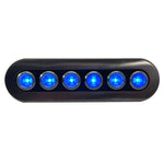 This amazing and stylish 6-button switch button system features blue backlit LED buttons and an array of label options with logos and patterns to select the right light in use. This switch panel is prewired and fused and ready to install in minutes to up to 6 lights or other electronic systems to turn on/off. The 316 stainless steel cover bezel gives this unit a phenomenal look and hides the screw mounts behind the bezel. Great for Automotive or Marine applications.