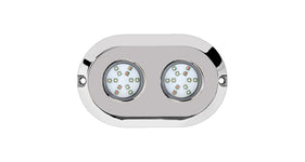 Marine Sport Lighting Stainless Steel LED Underwater boat lights function as transom lights and are also great for dock lighting. Use this durable LED boat light to add color to your wake, attract fish, or for nighttime swimming and diving. The LED housing is vibration and shock-resistant and is made from a solid piece of 316 marine-grade stainless steel with a shatterproof polycarbonate lens. These IP68-rated LED lights are completely waterproof, and intended exclusively for underwater use. The 120-Watt underwater LED boat light is designed to last 50,000 hours, operates within a wide 9-32V DC range, and uses 36 High-Powered Cree LEDs. Installation hardware is included for surface-mounting on a variety of transom types.