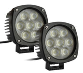 Universal Heavy Duty Series 4.3" 2x35W Round Spot Beam LED Lights (RS-4CREE-35W-2) by Race Sport®. 1 Pair, 7-LED. Black housing, white light, clear lens. 9-32V. Lumens: 5000. 6500K. Aluminum. Race Sport Lighting's Round 35W CREE LED spot light offers an almost unparalleled amount of light output out of a, comparably, smaller housing.