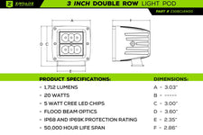 - 1712 Lumens, 20 Watts, CREE 5W LED Chips per pod light