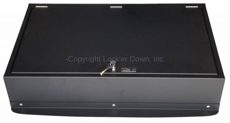 This new design is our first TruncVault and was contracted by The US Marshall Service Fugitive Task Force. This unit has an open bottom, we mounted the guns in the lid, making them more accessible, yet secure. This unit is 38" wide, 23" front to rear and 8" deep. Special orders can be made for different depths. This unit has many application possibilities