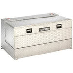 This product is a chest style box for storage and an L-shaped fluid tank recommended for construction and agricultural use. Made with .100 inch thick aluminium. Not intended for transferring gasoline or other flammables and should be not be used as an auxiliary fuel tank. Does not meet DOT specifications. Lund Tradesman 90-gallon bright aluminium combo storage tank is designed for fluid and solid storage. It has a chest style box for tools storage and an l-shaped fluid tank for liquid storage. It is constructed from highly durable 100 gauge aluminium. This tank is recommended not to be used as an auxiliary fuel tank and is not intended for transferring gasoline or other flammables. It is available in an attractive black aluminium finish.