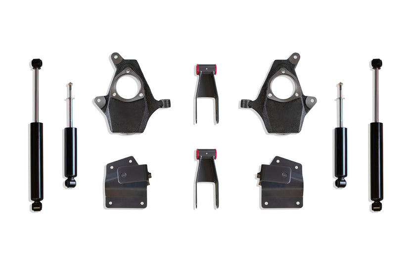 - Kit Is Comprised Of 2" Front Lowering Spindles Part# 100920 & 4" Rear Box Kit# 200941 (Shackles, Hangers, Front Shocks & Rear Shocks)