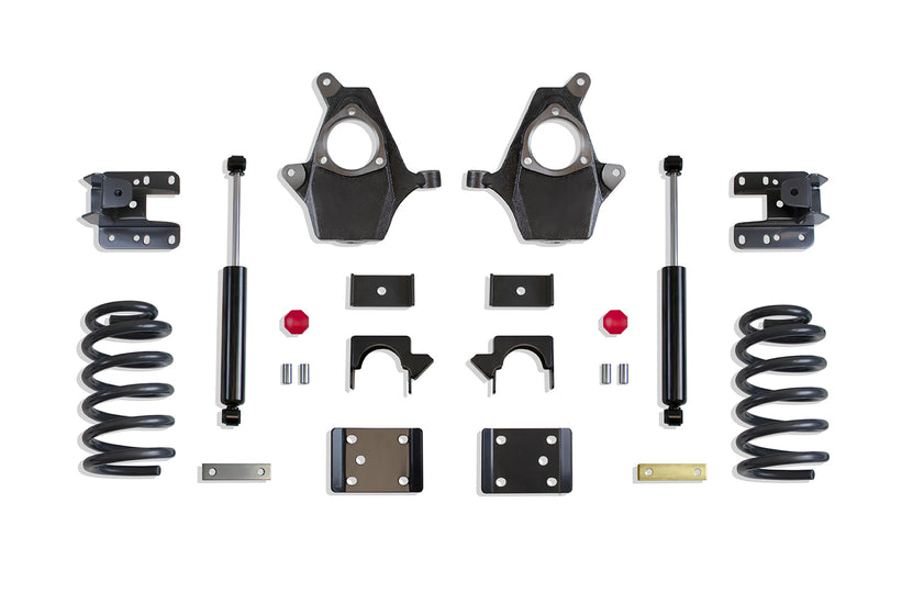 - Kit Is Comprised Of 2" Lowering Spindles Part# 101320, 2" Lowering Coils Part# 251520-8 & 5"-6" Adjustable Rear Box Kit Part# 201360 (Flip Kit, Hangers & Rear Shocks)