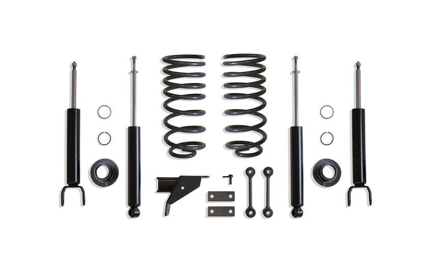 - Kit Is Comprised Of Adjustable Front Lowering Struts Part# 372403 & 4" Rear Box Kit Part# 202740 (4" Rear Coils, Trac Bar Bracket, Sway Bar Links & Rear Shocks)