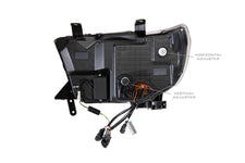 No Substitutes: If you're still running oldschool halogen headlights on your 07-13 Tundra or Sequoia, then you're just behind the times! Thankfully the new Morimoto XB LED headlights: Look great. Are well-built. Have a virtually infinite life span. An unbeatable warranty, and out-perform the alternatives. Easily making them the best LED headlights on the market today for the Tundra aftermarket. It's worth noting that these headlights now also fit the Sequoia trucks too, with mounts for the OEM headlight washer system. Amber Sequential LED DRL: This is the real game changer for the Toyota guys crowd out there. The LED daytime running light on this version of the XB LED headlights is powered by Amber Osram LEDs, looks amazing, is insanely bright--easily visible during the day! A separate optic that's dedicated to the turn signal function uses another row of amber LED's to produce a full sequential turn signal. For those who are a bit more traditional, the turn signal can also be setup to run as solid on/off style too. Performance: We've always been blown away by the fact that the other brands don't even consider how well their headlights perform on the road at night. Most often, they're a downgrade compared to even the standard halogen setup, and that's a shame. The good news is that Morimoto's XB LED headlights produce a well defined beam pattern with a great amount of width, intensity, and a proper distribution of light. DOT Approved: Make no mistake, these will produce a much different [better] result than slapping some LED replacement bulbs into your stock housings. Their LED-specific reflector optics meet & exceed all SAE, DOT, and FMVSS108 regulations when aimed properly...and that's easy to do with their integrated vertical/lateral adjusters. Plug-n-Play: Wiring is easy too! The LED headlights are designed to work on your Toyota Tundra without any modifications. They will plug into the factory connectors for the stock headlights and each assembly includes all necessary connectors, rubber seals, and pigtails for a plug n play install. No error codes, no flickering, hyper-flashing, or radio interference. They can easily be removed, and will not void your factory warranty. Well-Built: Their UV-coated polycarbonate lens will resist the test of time, ensuring your truck's new headlights will look good as new for many years to come. The PPS plastic housing is light-weight and much stronger than comparable alternatives. The die-cast aluminum heat-sinks inside the housings provide more than an adequate amount of cooling for the OEM grade Osram LED chips that produce the light. These complete headlights may be new to the market, but Morimoto's XB LED fog lights have proven themselves perfect after 5+ years out now, which is confidence inspiring. They Look: Amazing. At least in our opinion! The subtle OEM-like elements incorporated in their design are more than enough to make them stand out, but they're clean enough to be considered top of the line original equipment to those who don't know any better. The piano black trim and smoked gray reflectors keep the color scheme neutral for any color truck.