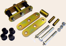 MORE Lubeable Jeep Shackles are made from 3/8" thick steel. A thick walled center brace bolts in place with grade 5 hardware. The shackle bolts are drilled and fitted with a zerk to allow the grease to flow into the "channeled" black polyurethane bushings.* Crimp-Loc nuts keep all parts clamped in place, and all greasable shackles for Jeep vehicles are sold in pairs. Order two pairs to outfit both ends of your Jeep. Contact us for more information on our lubeable Jeep shackles.