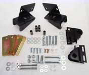 7686-6SB Shackle Reversal Brackets with Shackle Hanger using YJ springs 2-1/2" on your CJ for a smoother ride. 1976-1986 Jeep CJ-5, CJ-7, CJ-8 vehicles. The front pivot brackets are fully welded, painted and ready to bolt into existing holes in your CJ frame. Spacers are provided for the purpose of different winch mounting possibilities, and / or if you want to use our frame plates FP300. The mounting method for the shackles is unique with this system. The Shackle Hanger is a complete Bolt-On bracket that is adjustable fore & aft on the frame. This is important for all the different leaf spring combination's. It will work with or without a lift kit, spring under or over the axles. This S.R.S TM will lift the front of your Jeep one and a half inches. All brackets are fully assembled and painted, ready to bolt on. No welding required. The front driveshaft will need to be modified with a long travel slip in stub.