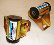 Now that rock crawling has become the favorite past time for Jeepers and we are putting our Jeeps in places that they were never designed to go, the stresses on the stock Jeep motor mounts and engine block are tremendous. With deep gearing, big tires, lockers, and mega torque, the stock mounts can be torn apart in no time at all. They bolt into stock holes in the frame and engine mounts. Black polyurethane bushings insulate from steel to steel contact.